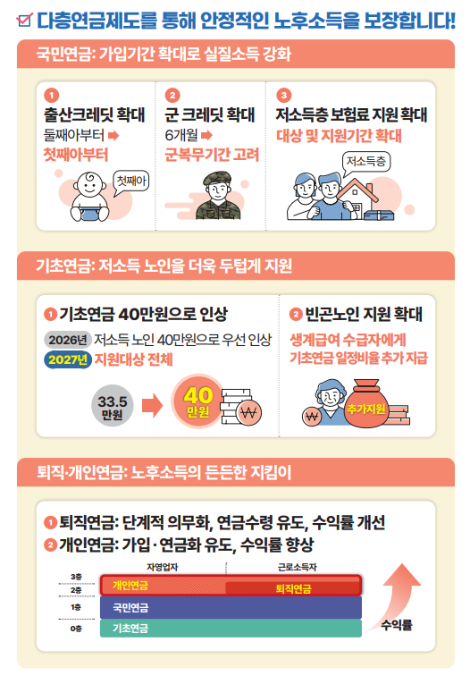 현재는 2033년부터 65세 도달하지만, 개혁안에는 수급 연령을 더 늦추는 방안을 검토 중입니다.