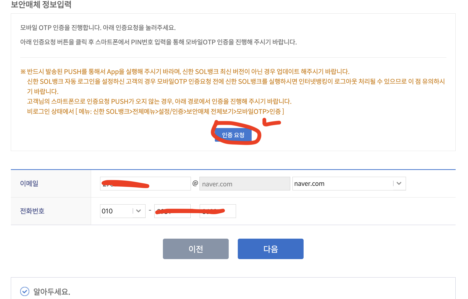 5. 추가 본인 인증을 진행하면서 계좌, 비밀번호, 보안카드 등으로 기입해 넣습니다.