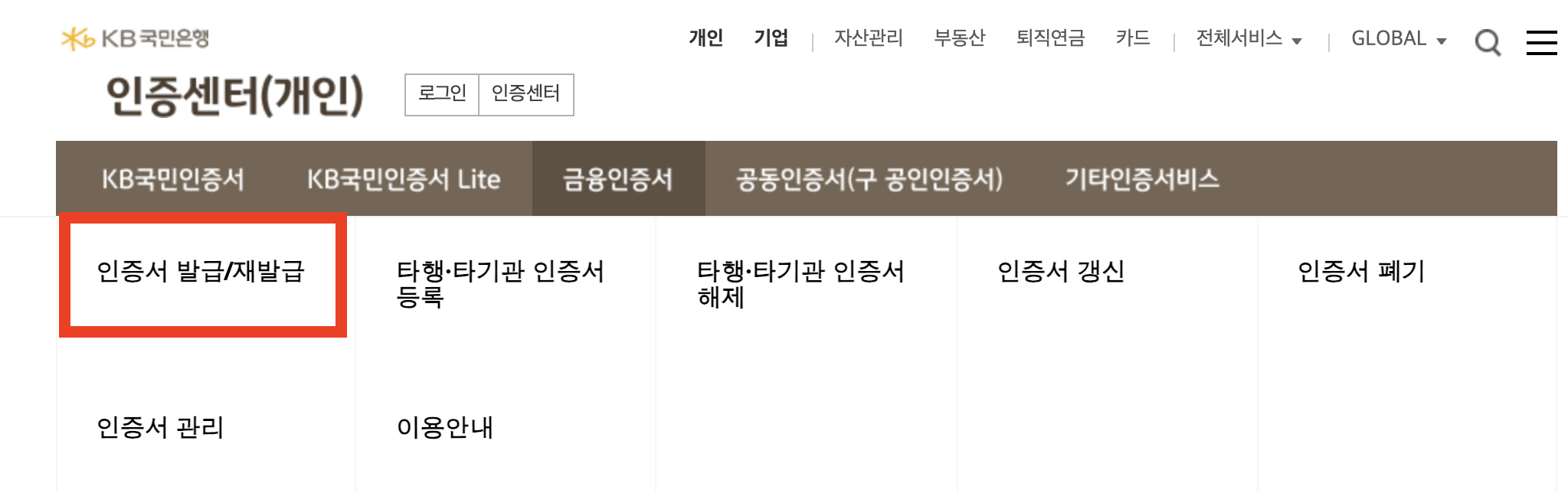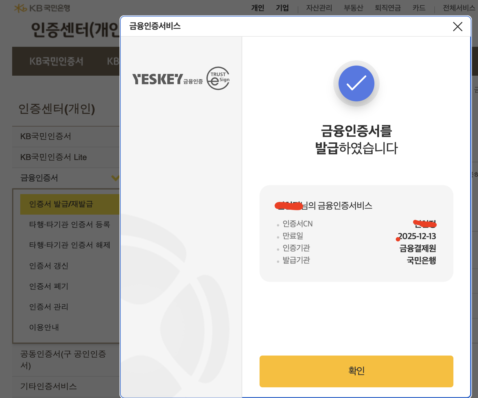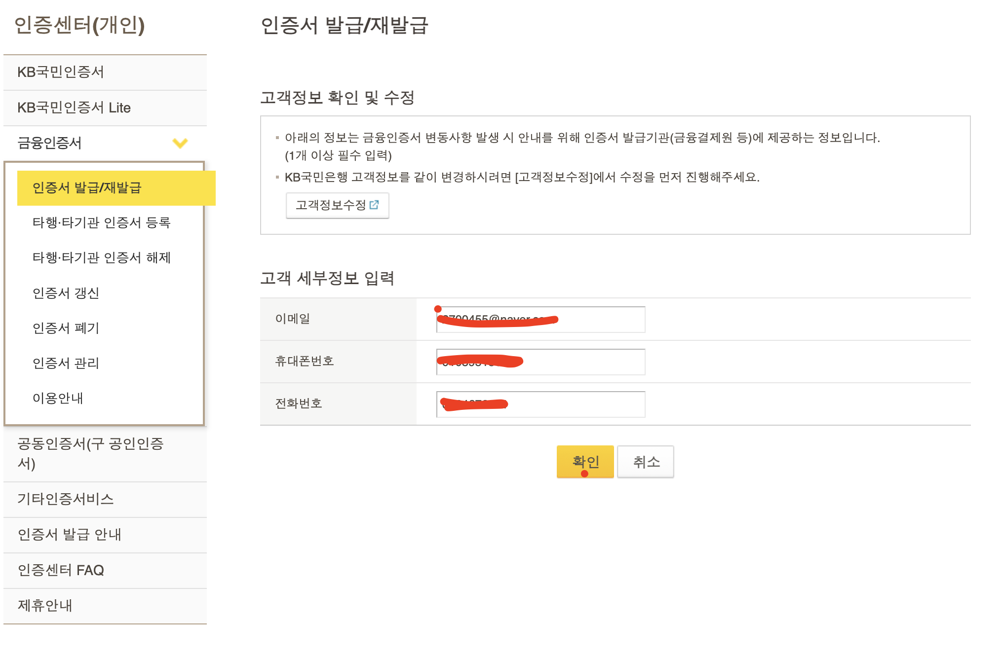 국민은행 금융인증서를 발급하고, 다른 은행도 사용하려면