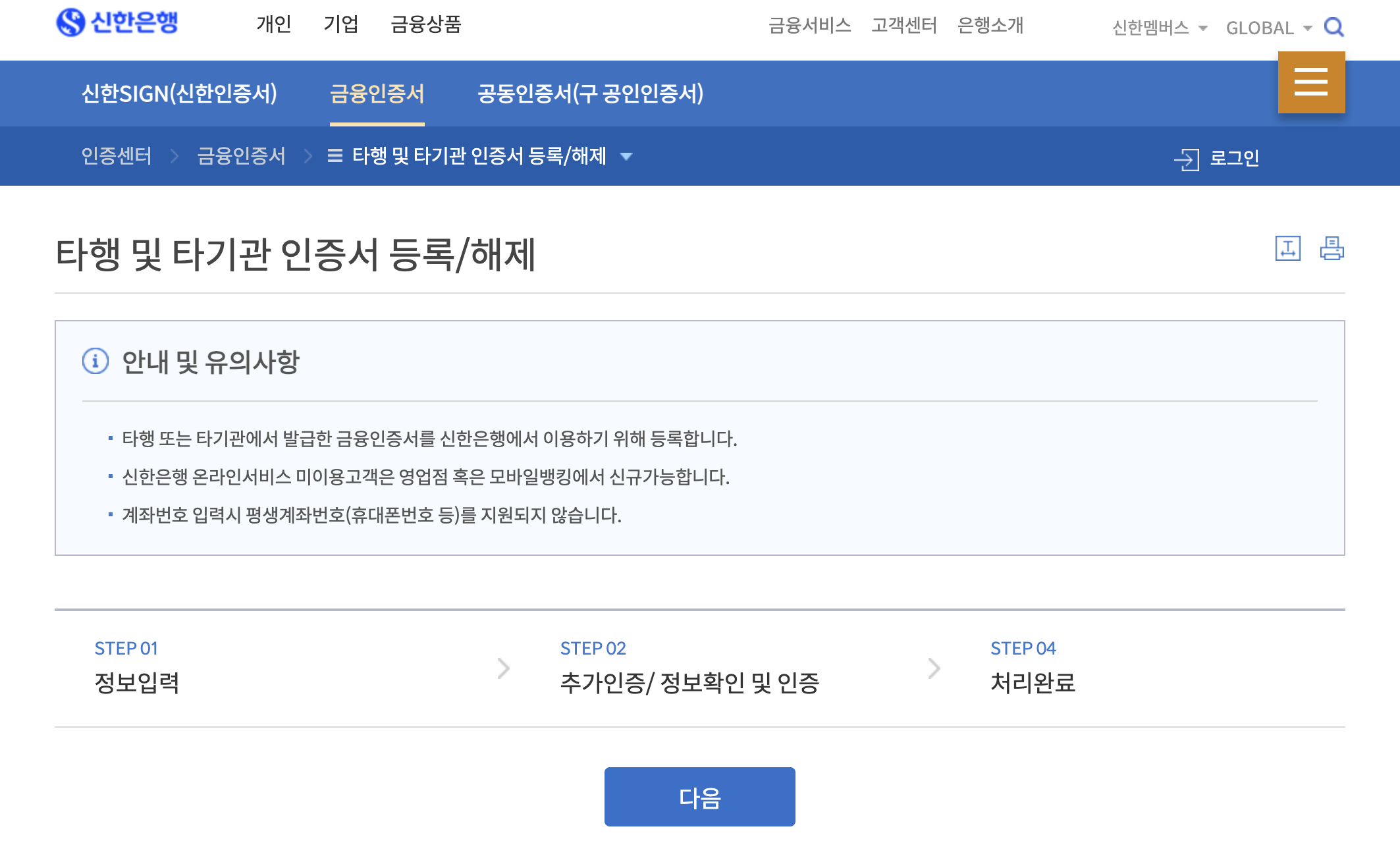 금융인증서 발급하는 방법