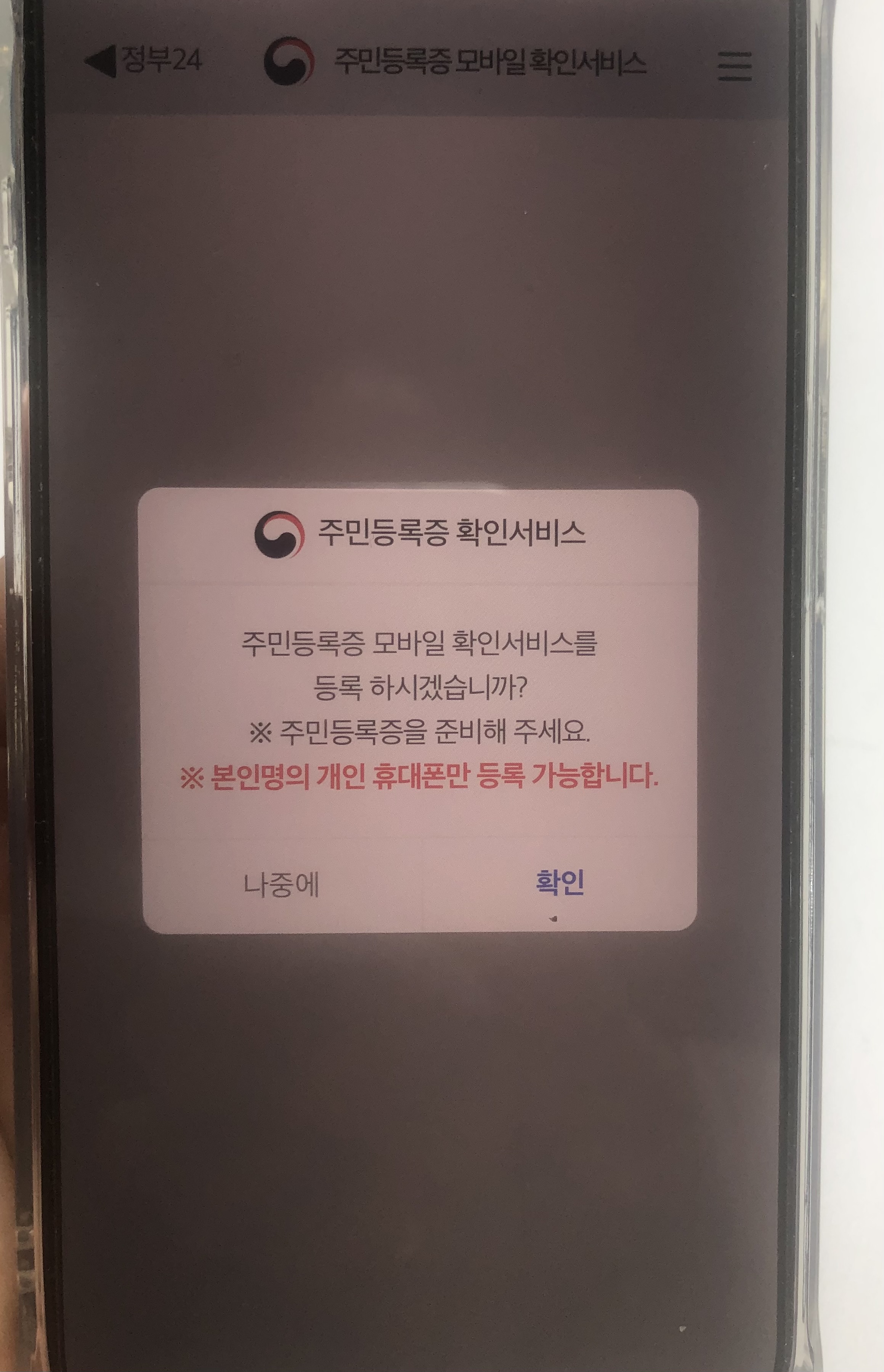 2) 등록하기 위해 실물 주민등록증이 필요합니다.
