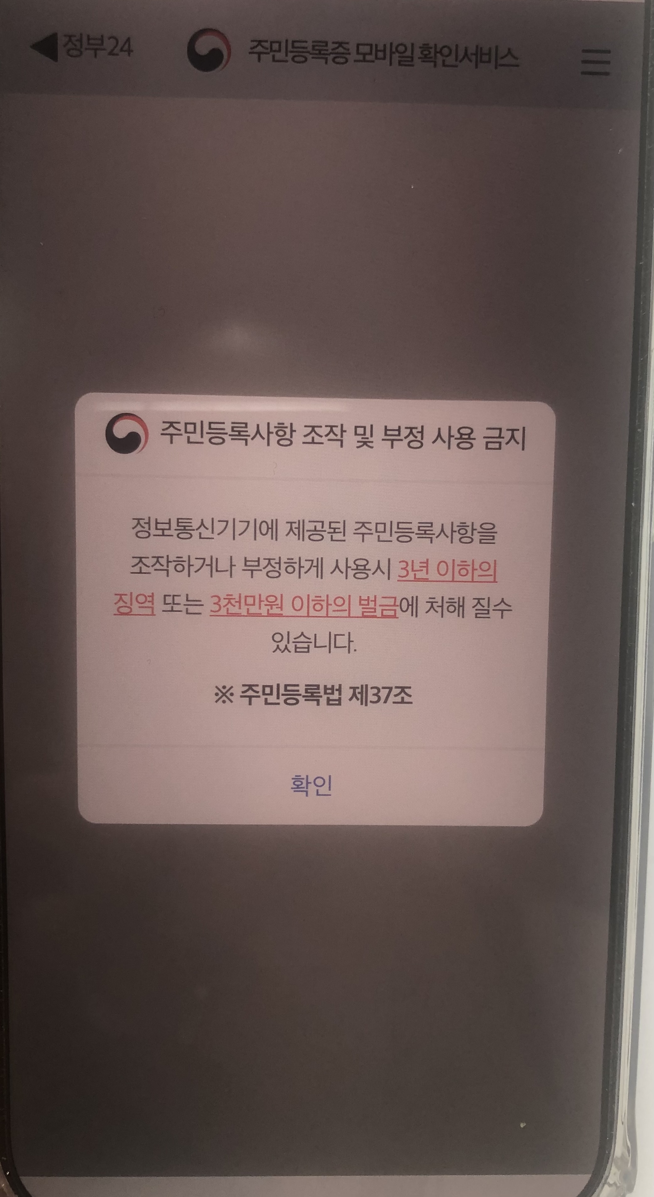 모바일 주민등록증 주의사항