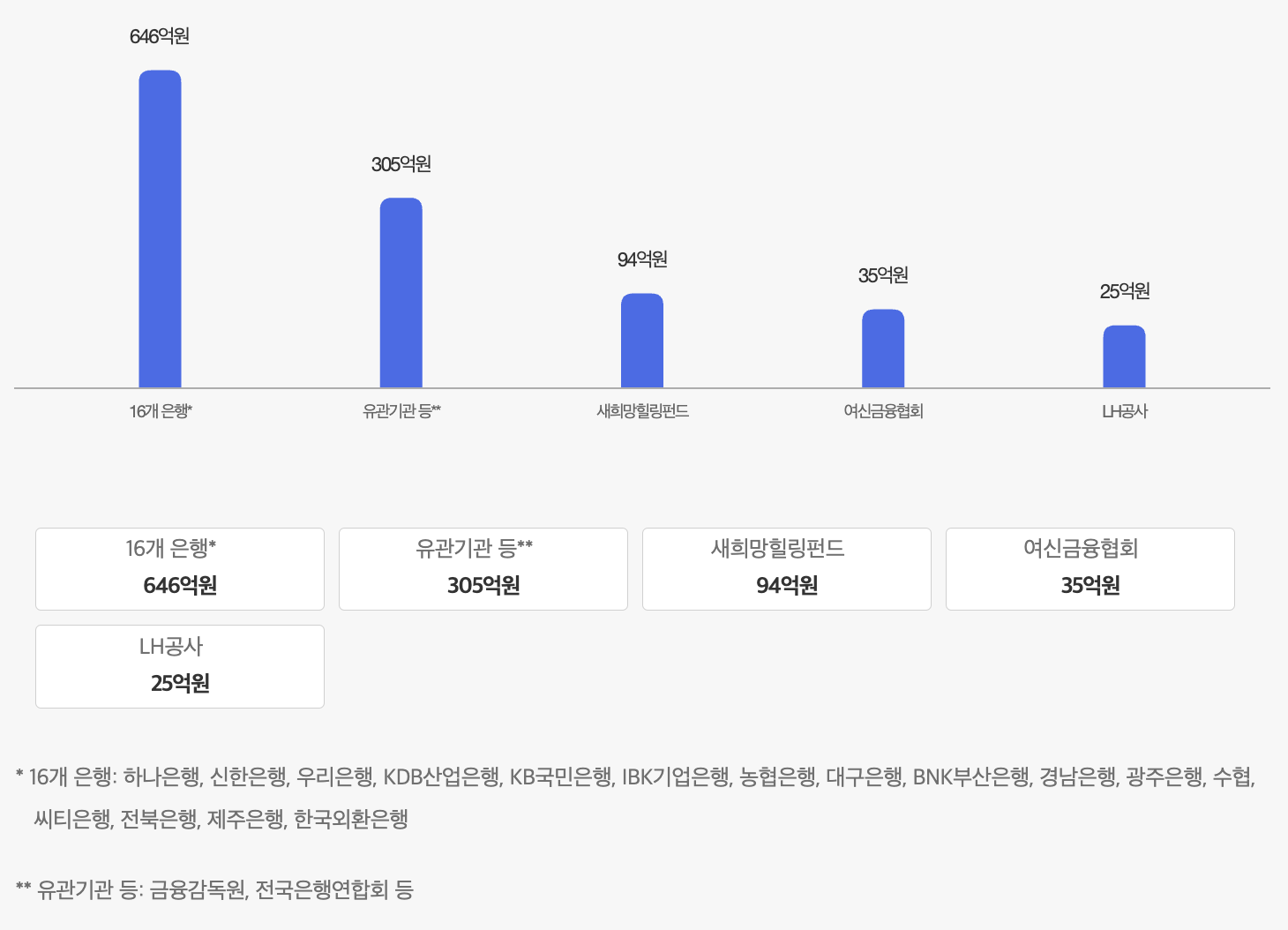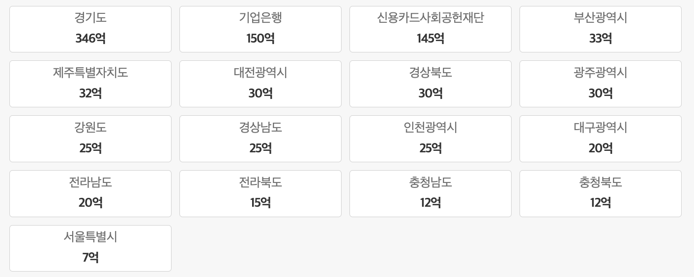 - 다양한 분야에 걸쳐 사회공헌사업을 펼치고 있는 금융회사, 일반기업, 개인 및 단체 등의 기부금과 지방자치단체 등으로부터 차입한 재원으로 운영되고 있습니다.