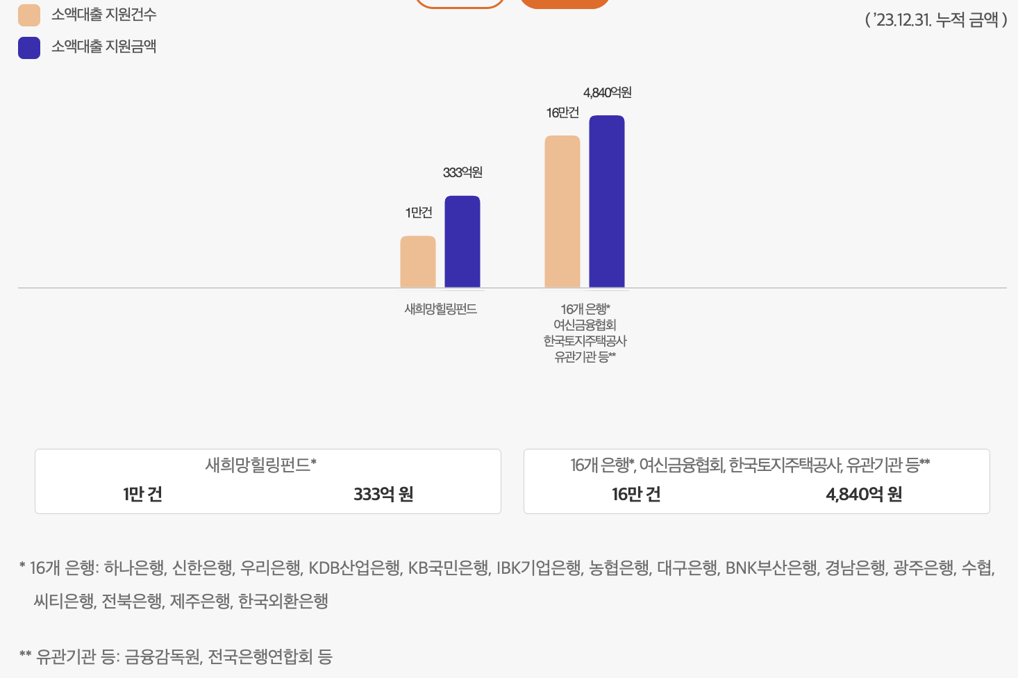 (개인회생 성실상환자 최대 700만 원, 새희망힐링론 대상자 최대 500만 원)