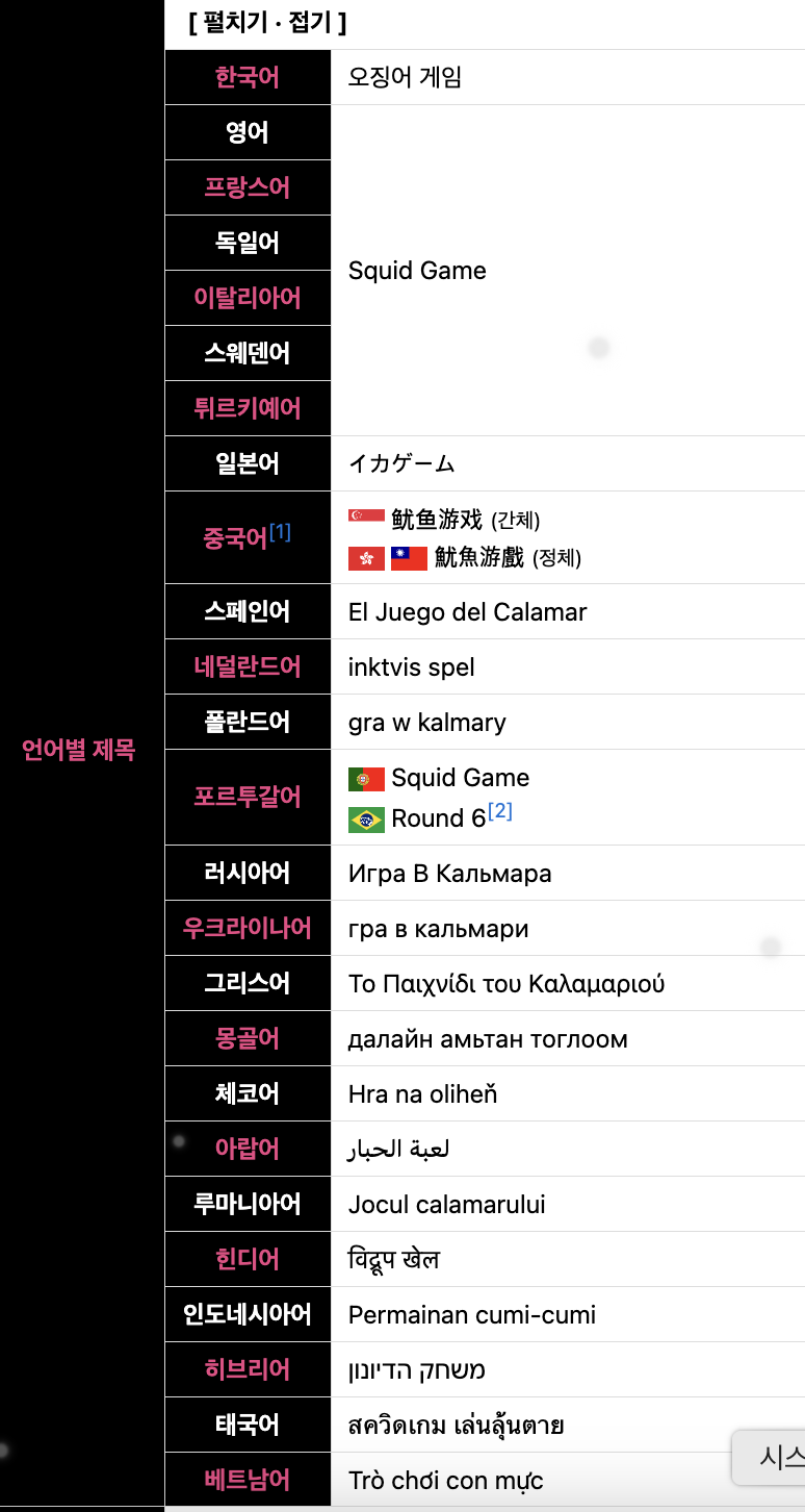 오징어 게임 언어별 제목