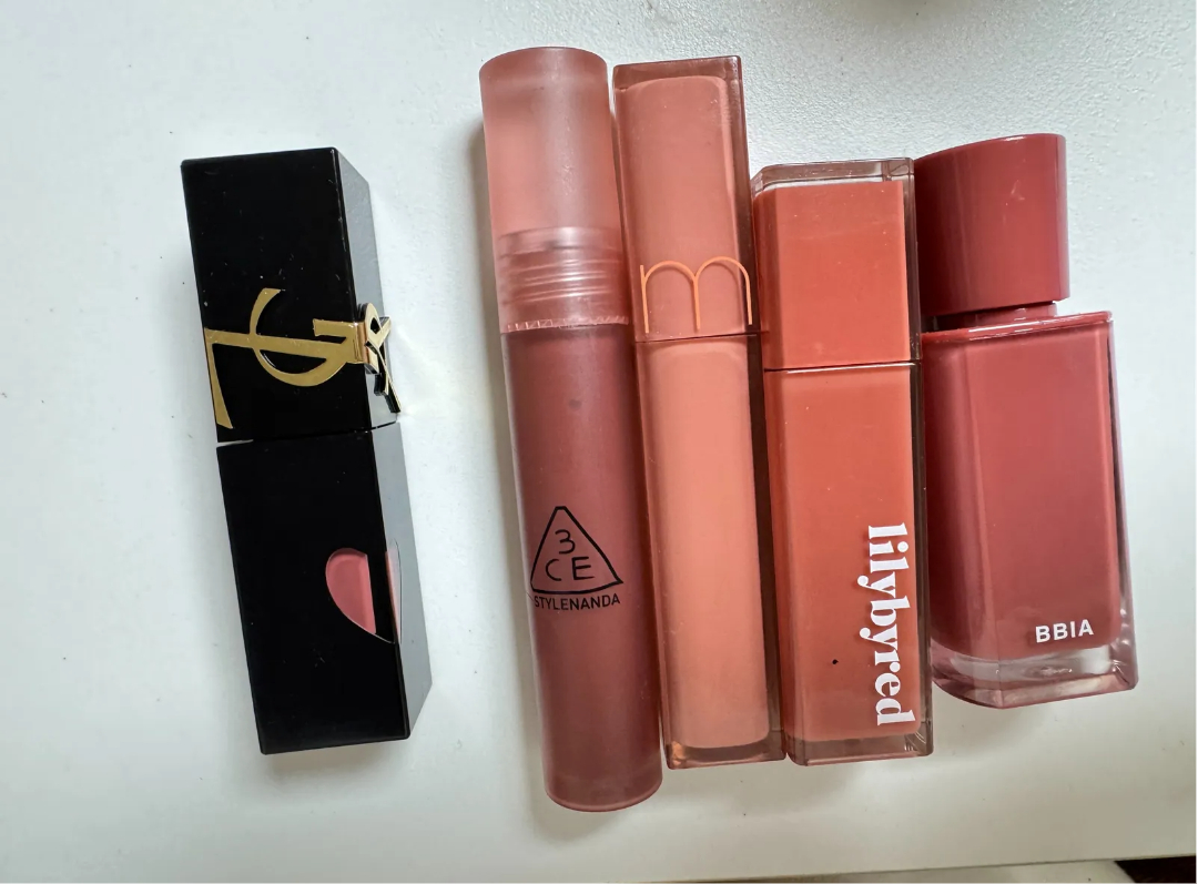 쌓을수록 약간은 진해지는 경우도 있으나 크게 달라지지 않아서 자주 사용하는 립 종류들입니다.