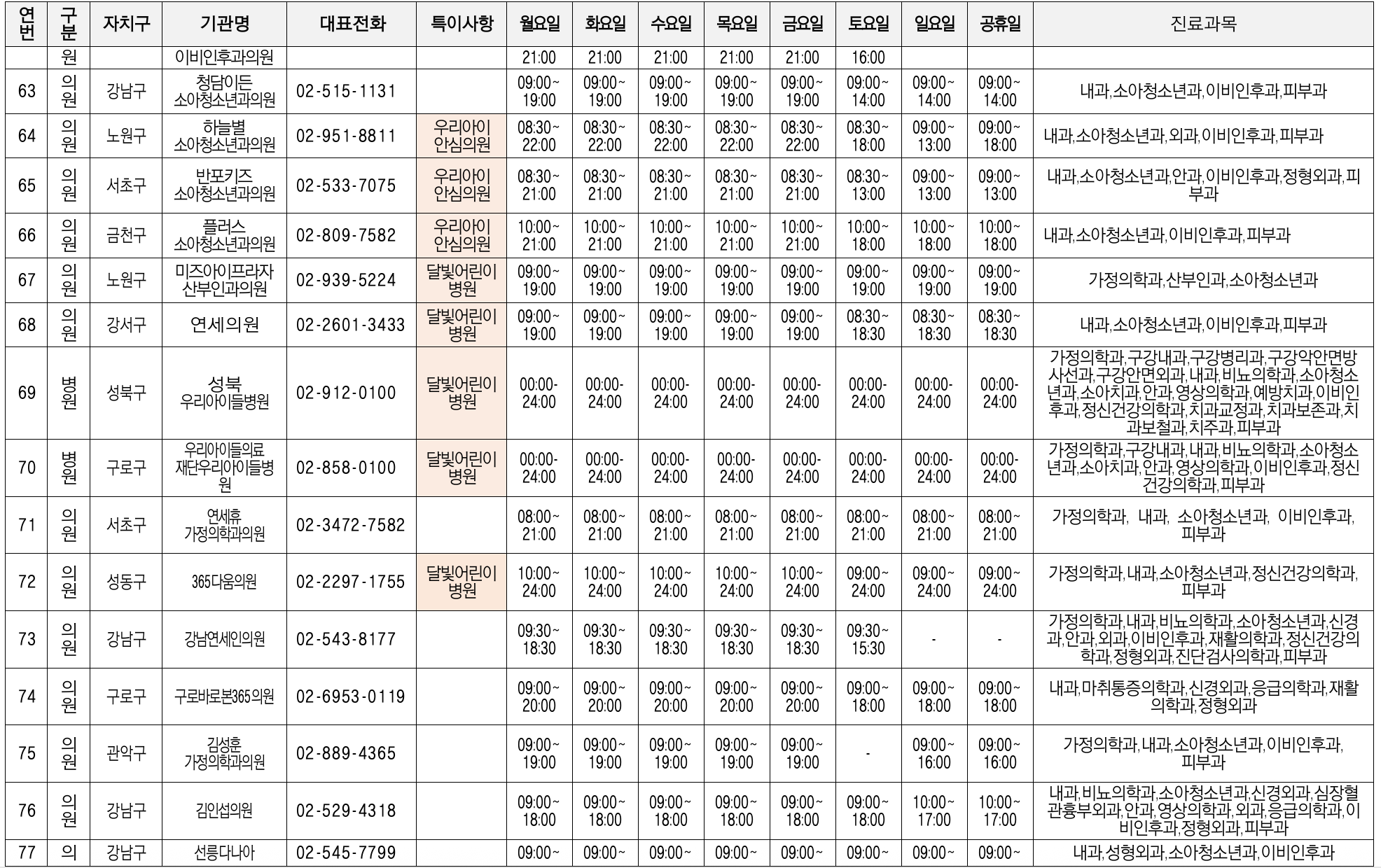 4. 서울시 야간, 휴일 진료 병의원 안내